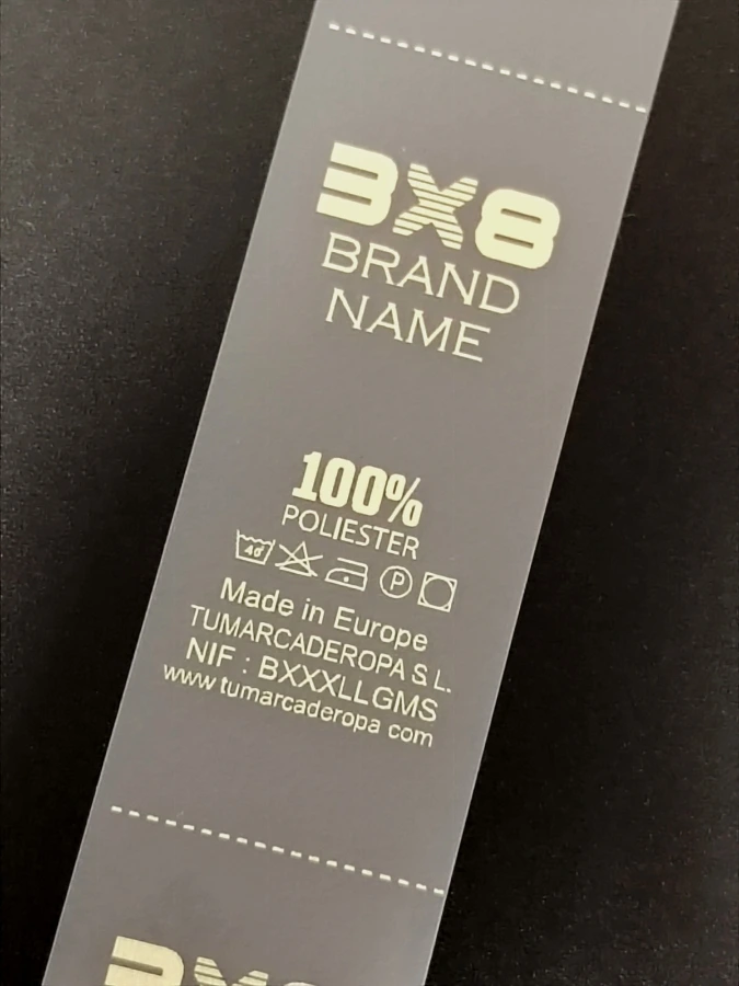 - Etiquetas de poliamida: suaves al tacto y muy resistentes a los lavados, una opción clásica para ropa interior, camisetas y moda en general.